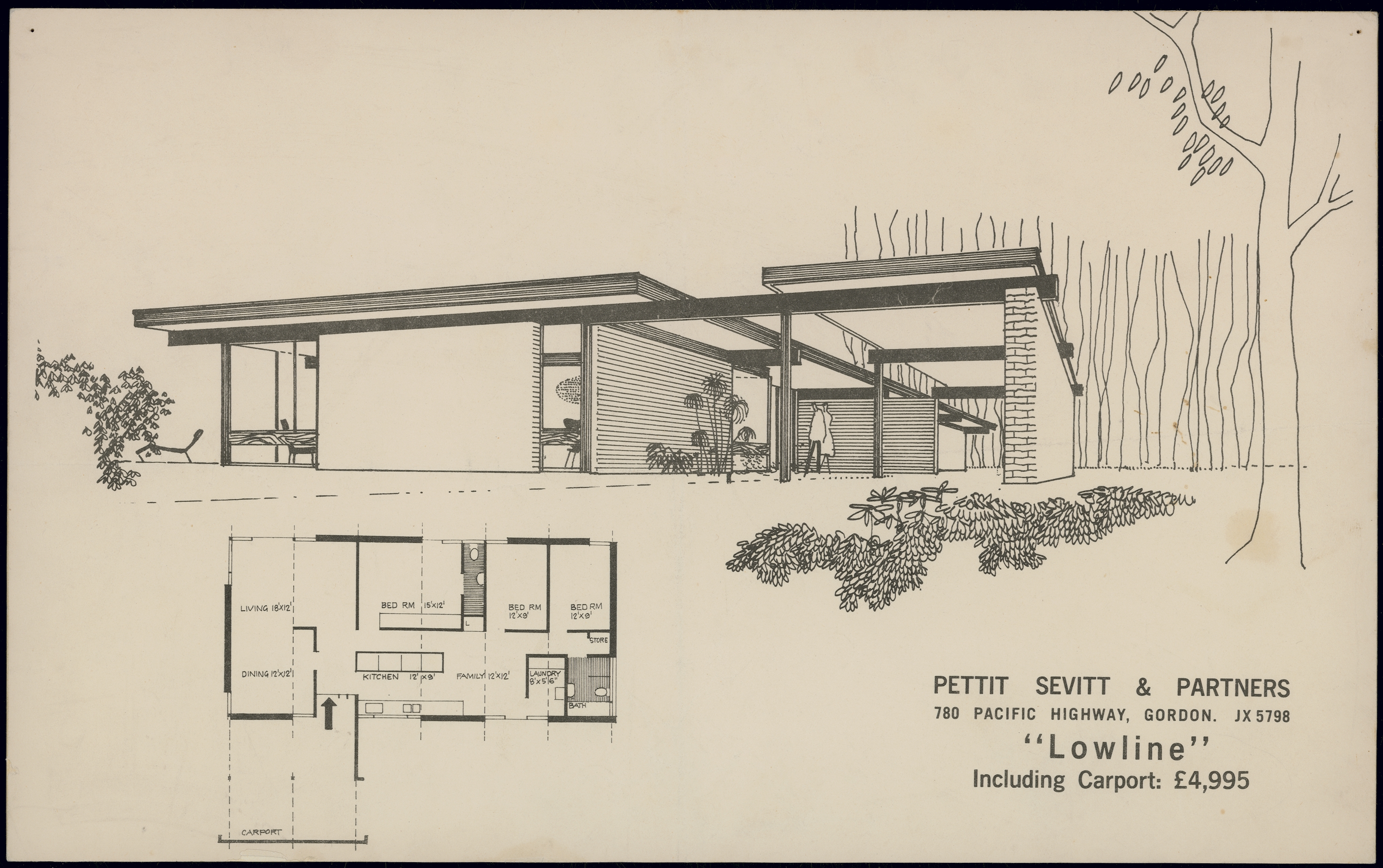 Our house is a Lowline, designed by Michael Dysart and Ken Woolley in 1962-63, and in our case – bought sometime between 1964 and 65, and completed in 1965.