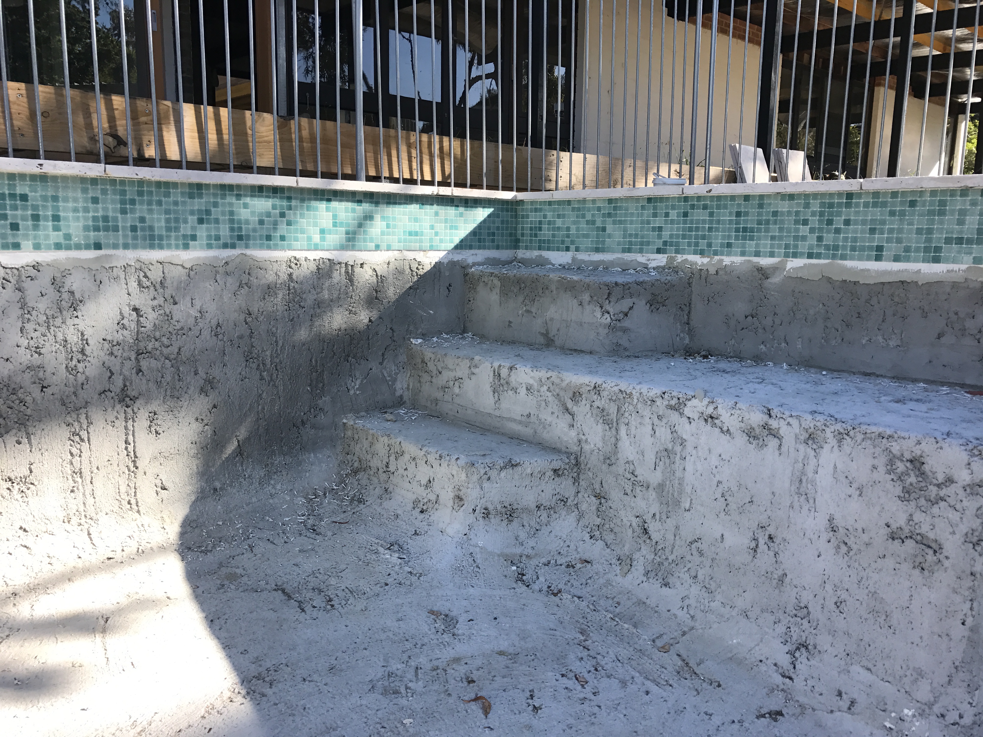 The tiles and coping after grouting, with the concrete setting prior to surfacing.