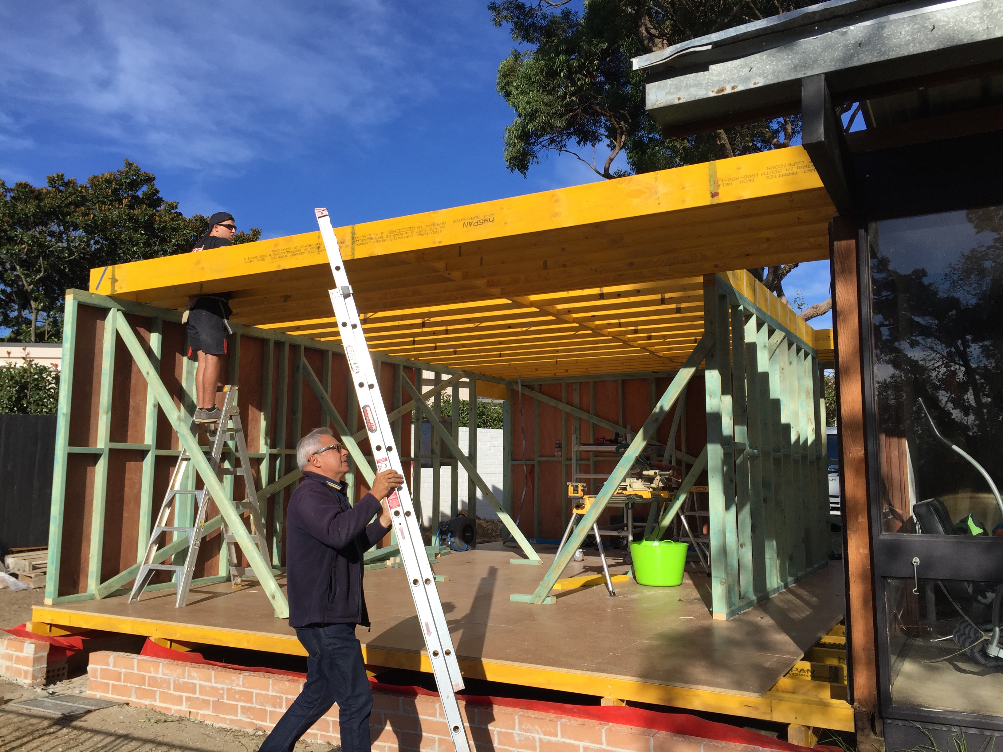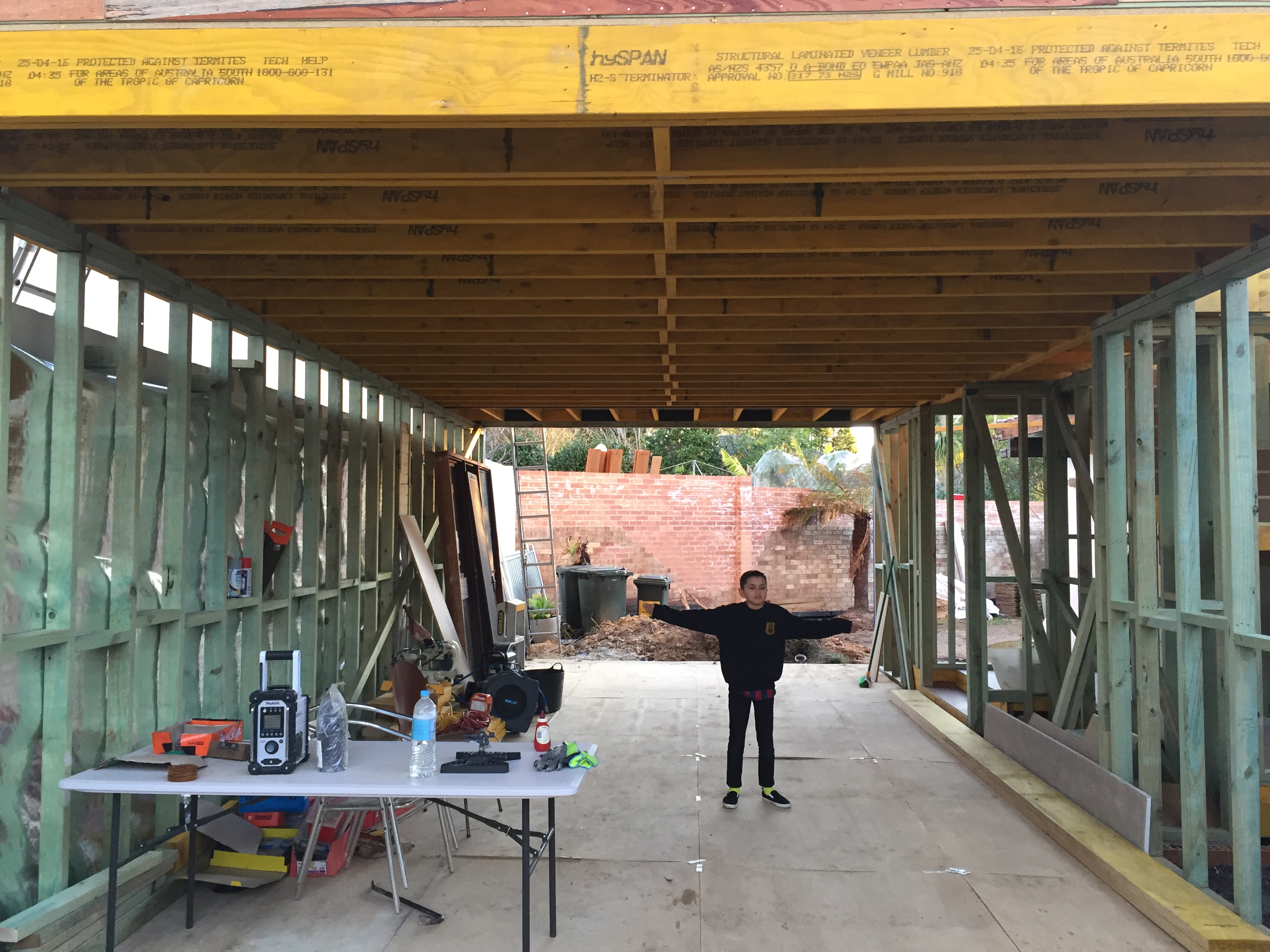 June 2016: Framework for extended living room – checking out the LVL structural beams