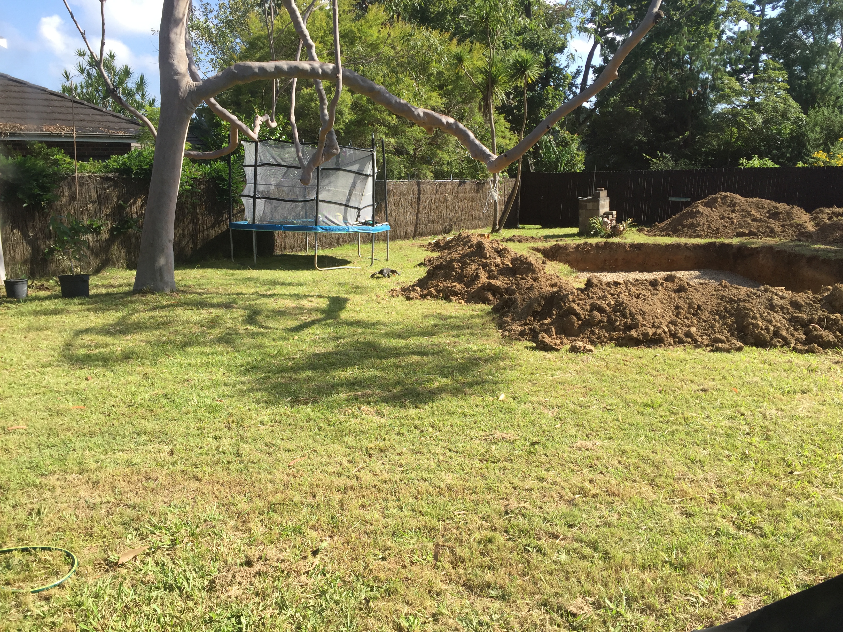 April 2016: Making progress with the pool. So much clay! Thankfully we did not hit any sandstone. Blue metal is laid on the base.