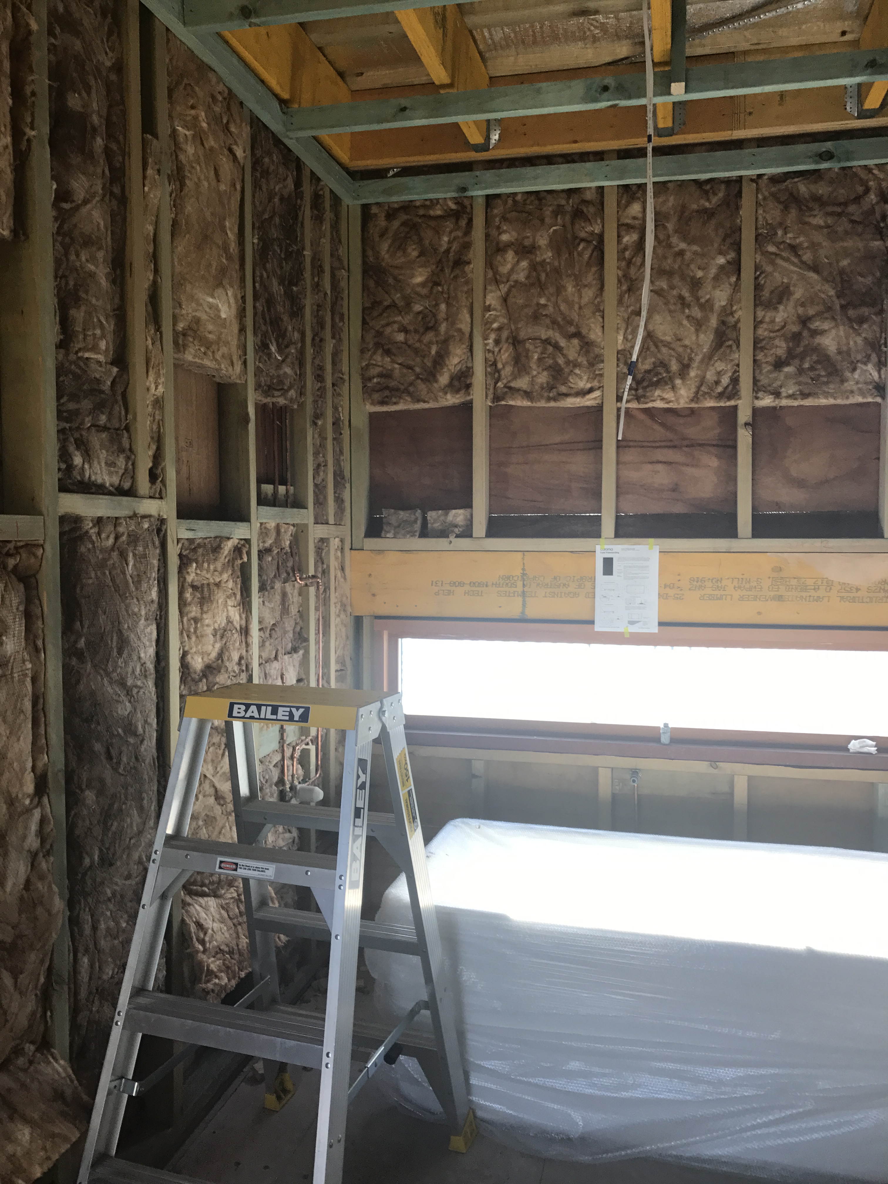 In addition to this, we had to fix a couple of faults. A P&S house with faults? Noooooo! Well in our case it was a surprise discovery that the Oregon beam running along the entire western wall and supporting the ceiling and roof, was unsealed. My husband climbed up on a ladder outside one day before the build started and discovered the beam had been placed on the brick wall, slightly askew. The result is, the brick veneer cavity was never closed off to the elements (not to mention rodents). There was a 10-20mm gap at the top of the brick wall where the beam should have been placed straight over it, so we now had the real cause of the mould gathering in our daughter’s bedroom …not to mention the extreme heat and damp which would occur in alternating seasons.
