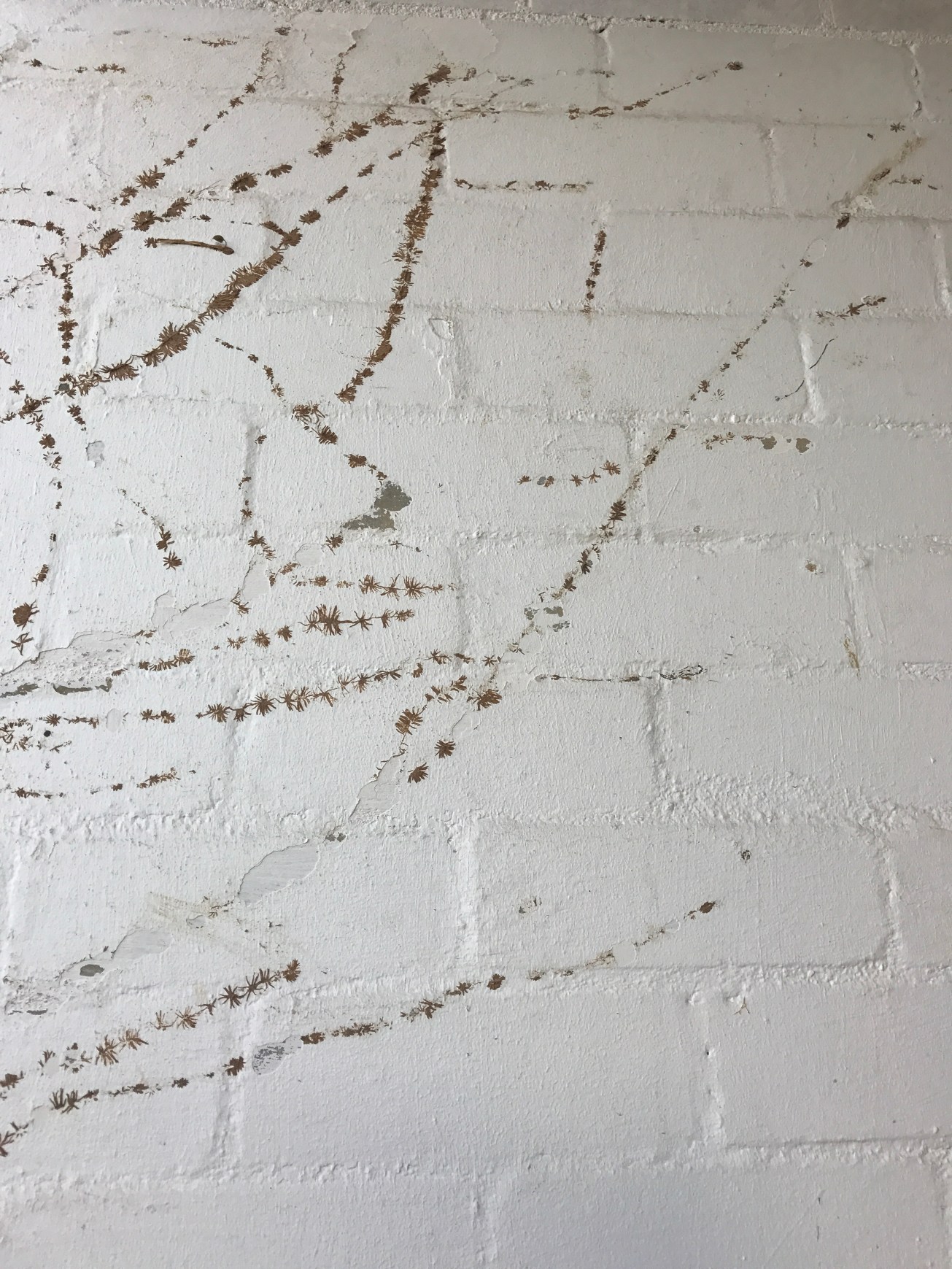 9. Painted brick, softly bagged – years of painting by the previous owner meant paint was flaking off the exterior (below). It means stripping back what we can before the final exterior paint is applied in Dulux Weathershield Natural White