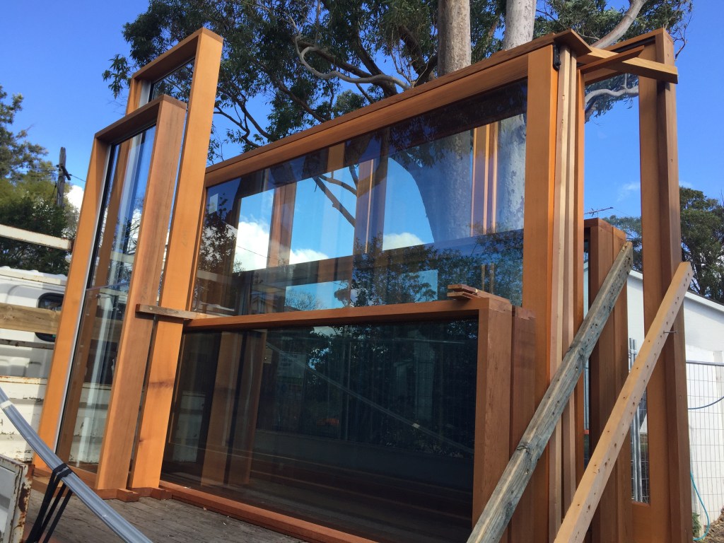 As we couldn’t get what we needed for the new area of the house, we were fortunate to have Moars Doors and Windows make the new versions of our cedar windows. We can’t recommend them highly enough. Every window and door was replaced sadly (we were nostalgic for the originals) but with Low E Glass and were far more efficient than refitting the original set.